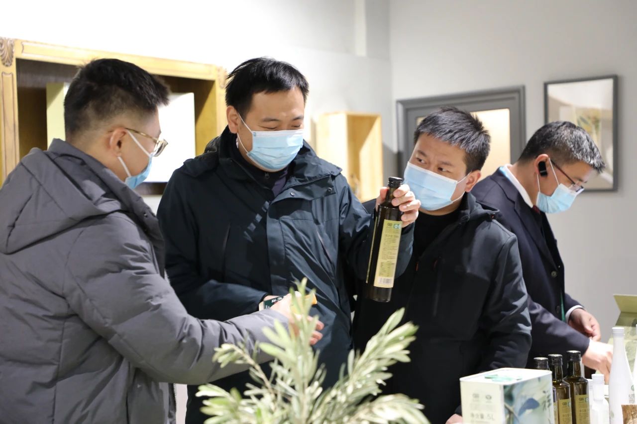 在產(chǎn)品品鑒區(qū),劉玉紅董事長(zhǎng)邀請(qǐng)理事長(zhǎng)及各位領(lǐng)導(dǎo)品鑒了2020年祥宇特級(jí)初榨橄欖油、